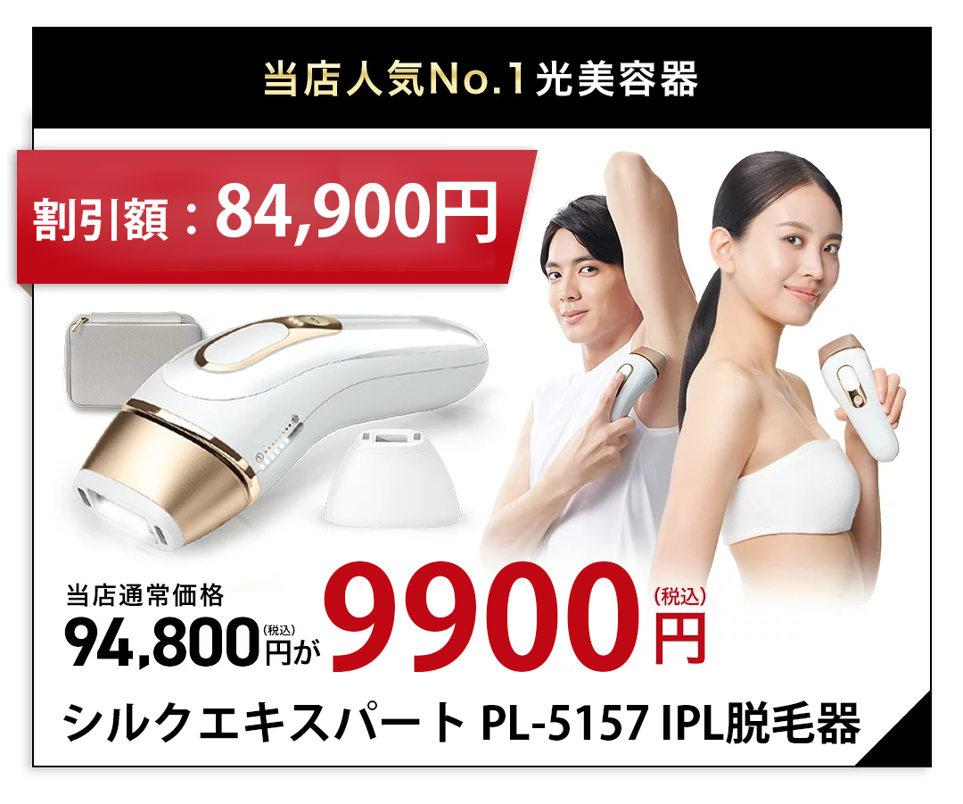 【期間限定クーポン!先着200名様限定!90%オフ:99,600円 → 99.00円】楽天ランキング1位の商品。業界トップクラスのパワーで、デリケートゾーンにも優しい使い心地。シルクエキスパート PL-5157 脱毛・光線療法機器。ブラウン社製。デリケートゾーン、男性、家庭用、IPL、ギフト、ユニセックス。
